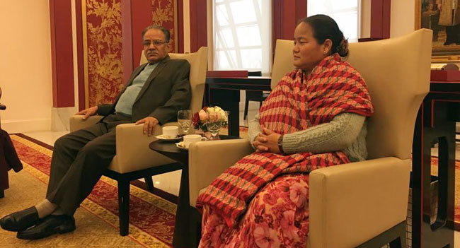 एमाओवादी अध्यक्ष प्रचण्डसँग सभामुख ओनसरी घर्ती । तस्वीर : प्रचण्डको